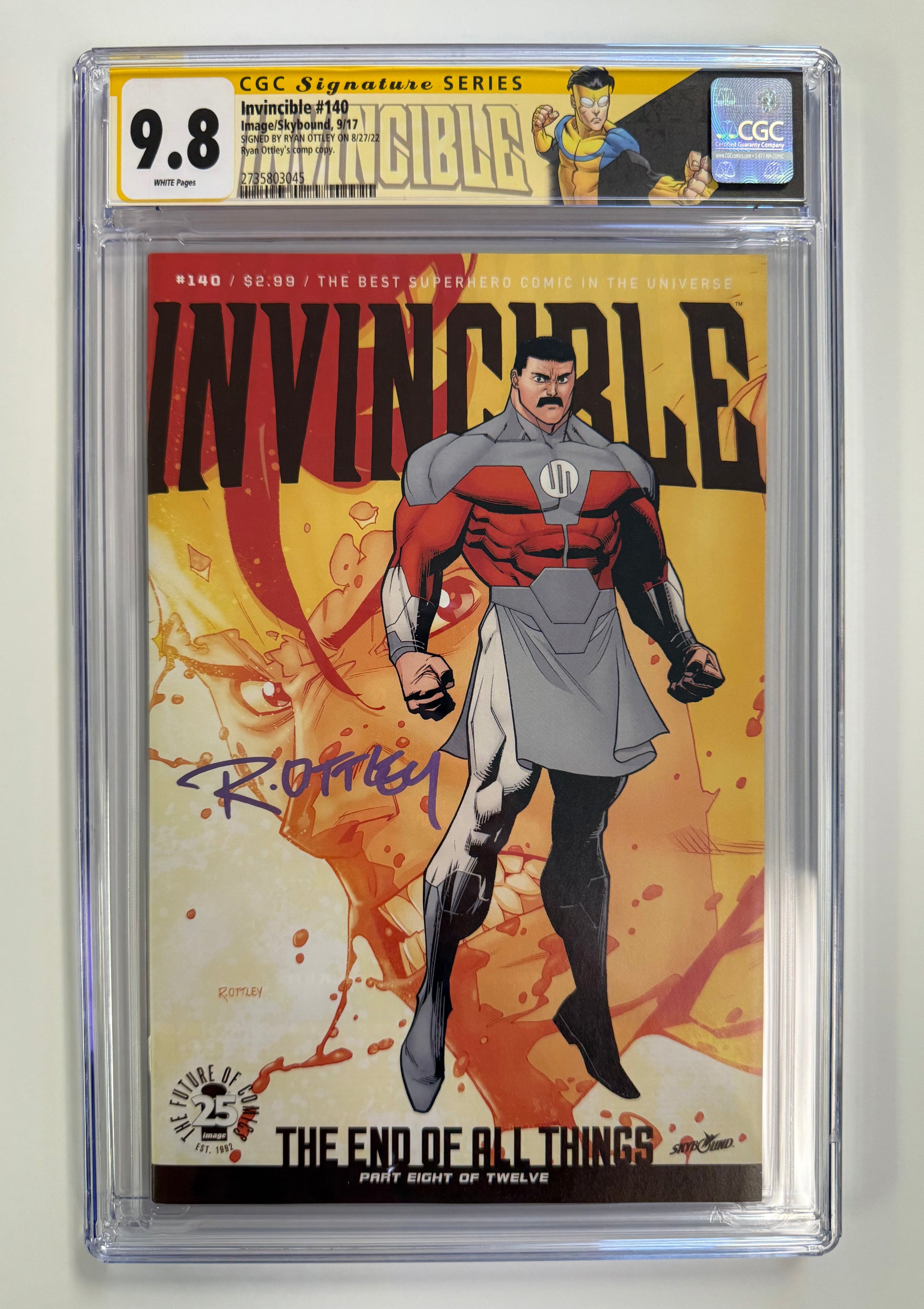 Invincible issue 140 CGC graded 9.8! Signed by Ottley. This is also one of Ryan’s personal comp copies which makes this especially unique and rare!