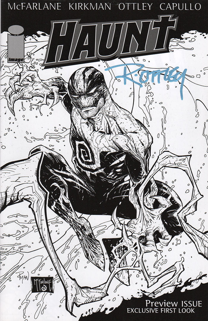 This special Preview issue came out before the Haunt series began, it contains designs and examples of Greg Capullo's layouts, Ottley's pencils, and Todd McFarlane's inks.